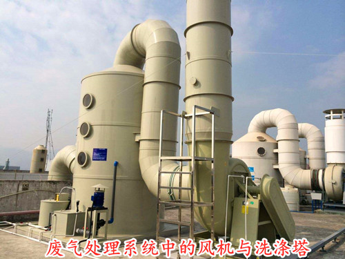 在前文有提到過洗滌塔的工作原理是廢氣由管道進入塔體底部,然后向上游走,經(jīng)過一層層的噴淋凈化之后由塔體頂部的除霧裝置除霧,最后由玻璃鋼離心風機通過管道排至大氣環(huán)境中。