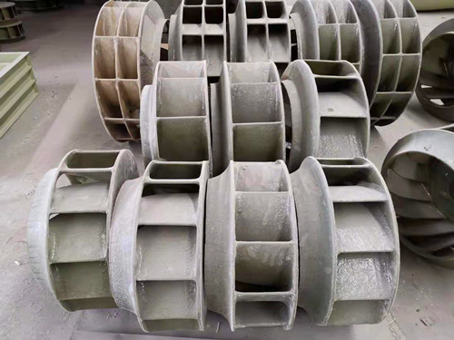 b、玻璃鋼離心式風(fēng)機的葉輪不是一次性成型的,需要單獨制作葉片、底盤、頂蓋等配件。在制作時需要確保個配件徹底固化之后再進(jìn)行組裝工作。