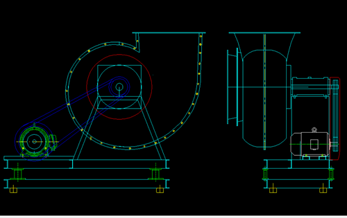 本文為大家展示一些玻璃鋼離心風(fēng)機(jī)解剖圖,讓大家對風(fēng)機(jī)的配件以及結(jié)構(gòu)有比較直觀清晰的理解。下面兩種圖分別是90°和180°的玻璃鋼離心風(fēng)機(jī)的簡易圖紙。