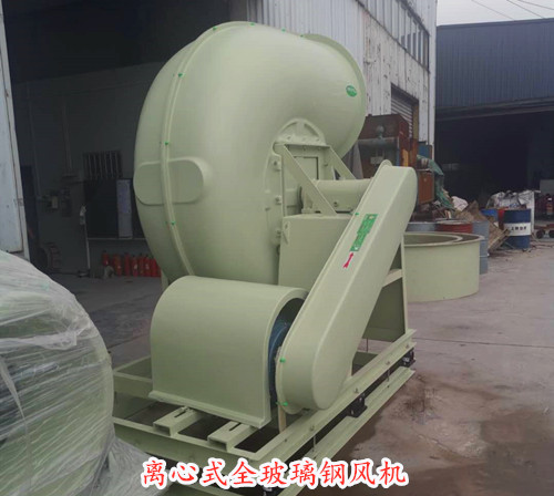 在前文介紹過本公司生產的風機配件主要包括外殼、葉輪、電機罩、皮帶罩、電機、軸承、基座、減震這幾部分。本文主要介紹的全玻璃鋼風機指的是除電機、皮帶、軸承、螺絲之外,其它配件均采用玻璃鋼(什么是玻璃鋼)材質制作(如上圖)。