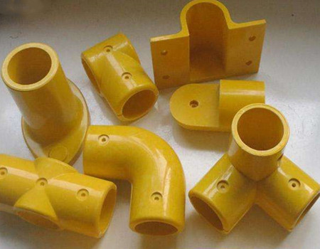 玻璃鋼護欄所使用的的配件以型材類產品居多,如圓管、方管、工字鋼槽鋼等屬于拉擠型材;槽鋼、底座、三通、四通、彎頭、直通等屬于模壓型材;還有在玻璃鋼平臺中作為承載面的格柵板則屬于模塑類產品。